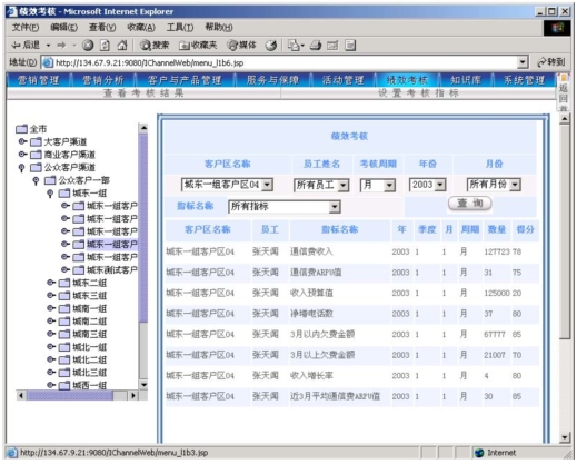 作為電信營(yíng)銷服務(wù)支撐系統(tǒng),其主要功能是支撐營(yíng)銷人員開(kāi)展?fàn)I銷活動(dòng),并通過(guò)功能完善的考核系統(tǒng)幫助各級(jí)人員進(jìn)行工作管理。本系統(tǒng)可以對(duì)KPI指標(biāo)進(jìn)行靈活的設(shè)定,可以靈活定義多種參與考核的數(shù)據(jù)來(lái)源,使得各級(jí)主管能夠?qū)蛻艚M、社區(qū)(商業(yè)客戶區(qū)、農(nóng)村統(tǒng)包區(qū))的營(yíng)銷服務(wù)工作進(jìn)行考核評(píng)分。考核周期可以通過(guò)參數(shù)進(jìn)行設(shè)定(一般以月為單位)。