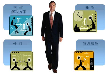 內(nèi)建——作為終端用戶的企業(yè)從供應(yīng)商那里購買一個解決方案然后安裝在自己那里。系統(tǒng)可以由終端用戶自己,咨詢顧問公司或者供應(yīng)商來安裝。一旦系統(tǒng)安裝完畢之后終端用戶就可以自己管理它或者由管理服務(wù)提供商(通常是咨詢顧問公司或者外包商)進(jìn)行管理。
