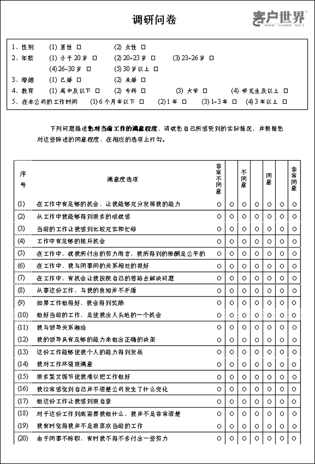 對(duì)于呼叫中心的實(shí)際情況來說,采用“明尼蘇達(dá)工作滿意度量表”(Minnesota Satisfaction Questionnaire,簡(jiǎn)稱MSQ)效果最好,因?yàn)椋?