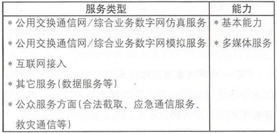 發(fā)布文件1中的服務(wù)類型及相關(guān)能力見表1。