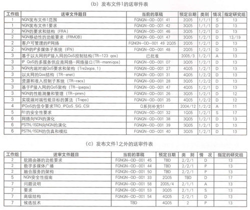 2005年5月之前,下一代網(wǎng)絡(luò)重點工作組已完成了計劃中的26個送審文件中的3個。所有的送審文件都必須指定專門的發(fā)布文件。遵循第13研究組的決定,下一代網(wǎng)絡(luò)重點工作組至少應(yīng)完成發(fā)布文件1的送審稿。表2給出了下一代網(wǎng)絡(luò)重點工作組按發(fā)布文件分類的送審件。