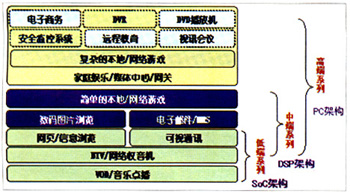 當(dāng)前國(guó)內(nèi)IPTV業(yè)務(wù)試點(diǎn)中采用的機(jī)頂盒,包括華為、中興、UT等主流廠商都主要采用了基于DSP架構(gòu)的技術(shù)解決方案,除能滿足點(diǎn)播、直播等標(biāo)清業(yè)務(wù)需求外,還可通過軟件升級(jí),以支持信息瀏覽、簡(jiǎn)單的本地/網(wǎng)絡(luò)游戲等增值業(yè)務(wù),基本上可滿足上述業(yè)務(wù)一定規(guī)模用戶商用要求。