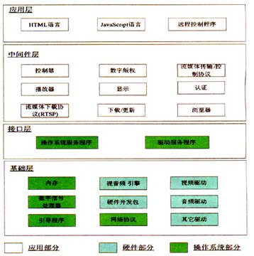 盡管如此,目前的主流產(chǎn)品仍然存在一定程度的不足,主要包括:機(jī)頂盒成本偏高,制約大規(guī)模業(yè)務(wù)的運(yùn)營(yíng)開展;采用私有封閉接口協(xié)議,無法與第三方廠商IPTV系統(tǒng)對(duì)接,不能滿足“一盒在手,全網(wǎng)通行”的業(yè)務(wù)需求;USB、游戲桿、無線鍵盤、WLAN、硬盤等外設(shè)接口的支持能力不足;機(jī)頂盒管理功能較弱,日志管理和上傳、在線升級(jí)版本更新、遠(yuǎn)程管理、在線監(jiān)控等方面功能有待進(jìn)一步提高;難以實(shí)現(xiàn)視頻編碼的平滑升級(jí),受限于機(jī)頂盒硬件配置,目前基于MPEG4的機(jī)頂盒很難平滑升級(jí)的支持H.264;業(yè)務(wù)支持能力有待進(jìn)一步擴(kuò)展,不能滿足開展視頻通訊和高清、大型網(wǎng)絡(luò)游戲的業(yè)務(wù)需求;業(yè)務(wù)QoS保證機(jī)制不完善;系統(tǒng)安全性有待加強(qiáng),在設(shè)備安全性和內(nèi)容安全性方面考慮不足;不能提供高中低檔產(chǎn)品序列,不能滿足細(xì)分用戶的業(yè)務(wù)需求。