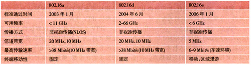 。。IEEE802.16-2005(IEEE802.16e)標準主要面向移動終端,最大傳輸距離為3~5km,其通信頻帶低于6GHz,上行鏈路的子通道頻寬與802.16a相同。當頻寬為5MHz時,它可以提供15
