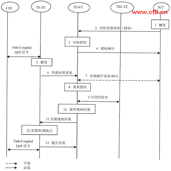 PE-FE收到來(lái)自CPE的Path-Coupled信令的觸發(fā),進(jìn)行資源決策請(qǐng)求。