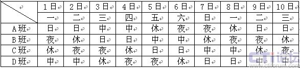 圖2 24小時四班三運轉(zhuǎn)排班表1