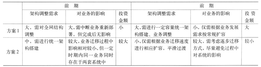 在實際規(guī)劃中,可根據(jù)現(xiàn)有業(yè)務(wù)和網(wǎng)絡(luò)情況以及未來增值業(yè)務(wù)的發(fā)展規(guī)劃、并結(jié)合投資額綜合考慮,選擇不同的網(wǎng)絡(luò)演進策略。在規(guī)劃投資金額較大,及建設(shè)、配合力量足夠情況下可選擇方案1;考慮業(yè)務(wù)運行穩(wěn)定性及改造復(fù)雜度,建議采用方案2根據(jù)業(yè)務(wù)發(fā)展情況平滑過渡。