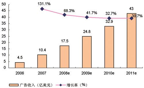 圖1:2006-2011年美國UGC廣告收入