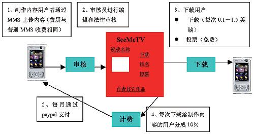 M1新加坡移動運營商M1推出了用戶制作及共享視頻業(yè)務——MeTV,用戶可以通過MMS上傳視頻內容,其它用戶可以瀏覽并下載。這項業(yè)務為用戶提供了一個展示自己和了解他人的平臺。這個業(yè)務也建立了與用戶分成的模式,用戶可以從自己上傳的內容中獲得利潤。用戶上傳的視頻內容,被他人下載一次,用戶就可以獲得0.05新元。自從2007年3月該業(yè)務推出以來,已經有超過4萬名用戶,收入最高的用戶已經達到50~100新元。