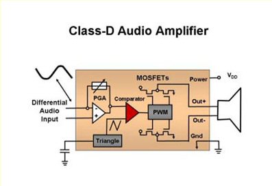 在音頻解決方案中進行折衷與音頻處理性能、音頻輸出功率、熱耗散和整體的功耗有關。傳統(tǒng)的音頻方案由兩到三個受AB類音頻功率放大器驅(qū)動的揚聲器構(gòu)成。然而,相對于它的整個音頻輸出而言,AB類放大器的工作固有地生成大量的熱。這些積聚起來的高溫因為需要大的散熱片來散發(fā)熱量,所以,在大多數(shù)薄形狀因子的平面電視中禁止采用AB類放大器。為了解決這個問題,業(yè)界采用了D類放大器技術(圖3)。目前,輸出場效應三極管(FET)可以在截止區(qū)與飽和區(qū)之間切換,從而提供比AB類放大器更高的效率。現(xiàn)有的音頻解決方案容許你完全利用數(shù)字信號路徑。這不僅僅最大化音頻效率,而且,它們也提供有效的處理和大于110dB的信噪比(SNR)。