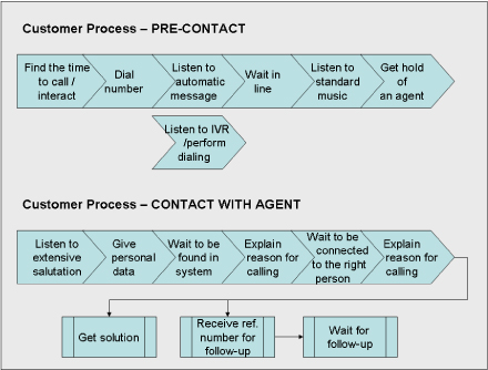 那么,從企業(yè)內(nèi)部的觀點(diǎn)出發(fā)看我圍繞這次簡單的預(yù)定流程所產(chǎn)生的總體客戶體驗(yàn)如何呢?這需要好好評估,我一共只打了兩次電話并在24小時內(nèi)得到解決,而且我們之間的互動——很有可能——已經(jīng)被記錄在航空公司的CRM系統(tǒng)中。但是如果你問問作為客戶的我,我會給出一個完全不同的場景描述:首先,提供給我的可聯(lián)絡(luò)電話號碼實(shí)在太多了,其次,沒有說明這些電話號碼處理的“范圍”各是什么,再次代理質(zhì)量不合格,她完全不知道自己該干什么,還得求助于另外一個同事,最后,也是很重要的一點(diǎn),最終提交的解決方法并不能讓人接受。這些信息——或者說的更準(zhǔn)確些,客戶的評價——出現(xiàn)在呼叫中心的報(bào)告里了嗎?出現(xiàn)在哪兒?沒有,這一方面是因?yàn)榱鞒滩⒉皇且钥蛻魹橹行牡挠^點(diǎn)來定義的,另一方面因?yàn)槲覀兪侨,我們努力的在工作,不希望自己變成透明人?