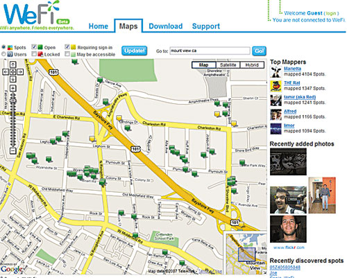 當(dāng)你需要進行緊急無線接入時,有一種方便、免費能找到附近熱點的辦法。運行這個程序并輸入你所在的位置,這個程序?qū)⒘谐龈浇乃袩狳c。它將幫你搜索到付費的或免費的熱點,并保持程序數(shù)據(jù)庫的頻繁更新。