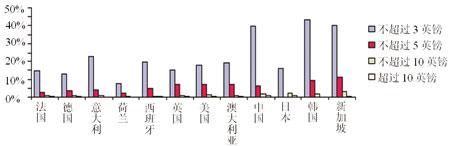 在那些少數(shù)愿意購買手機電視和電影大片的被調(diào)查者中,大部分人愿意每月支付不超過3英鎊的費用。其中,中國、韓國、新加坡的支付意愿較高,歐洲的意大利其次,其23%的被調(diào)查者也表示愿意每月支付不超過3英鎊的費用。愿意每月支付3英鎊以上的用戶非常少,在韓國、日本、新加坡這樣的國家,也只有不到11%的人表示愿意每月支付不超過5英鎊的費用。(見圖6)