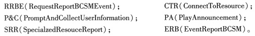 從分布功能平面觀察,每個(gè)業(yè)務(wù)分支對應(yīng)了一段CAP消息流。預(yù)付費(fèi)用戶查詢業(yè)務(wù)流程是移動智能網(wǎng)中比較典型的一個(gè)業(yè)務(wù),300業(yè)務(wù)的主要流程是:用戶撥接入碼,撥語言位,選擇流程,報(bào)余額,通話結(jié)束掛機(jī)等。CAP的消息流引起自動機(jī)的狀態(tài)轉(zhuǎn)移從而觸發(fā)下列消息事件,為簡單起見,我們在圖例中使用消息的縮寫,具體消息縮寫如下: