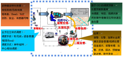 接處警應(yīng)用系統(tǒng)是應(yīng)急聯(lián)動(dòng)中心的核心部分,系統(tǒng)在保證“先進(jìn)、實(shí)用、可靠”的前提下,與全市應(yīng)急聯(lián)動(dòng)單位實(shí)現(xiàn)互聯(lián)互通、信息共享;把接處警系統(tǒng)與GPS、有無(wú)線通信、視頻監(jiān)控、預(yù)案指揮等技術(shù)系統(tǒng)有機(jī)的結(jié)合在一起,形成“以計(jì)算機(jī)網(wǎng)絡(luò)為基礎(chǔ),以有線、無(wú)線通信為紐帶,以接處警信息傳遞、處理為核心,以資源共享和計(jì)算機(jī)輔助決策為載體的綜合性系統(tǒng)工程”,從而提高應(yīng)急聯(lián)動(dòng)中心的指揮調(diào)度、輔助決策等綜合處置能力,滿足在復(fù)雜條件下指揮、調(diào)度、協(xié)調(diào)、處置城市不同種類和等級(jí)的突發(fā)事件的實(shí)戰(zhàn)需要。