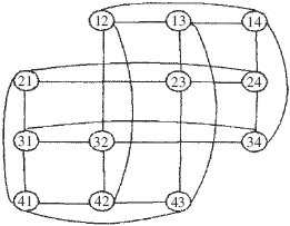 在數(shù)學(xué)上,(n,k)維排列圖[6](用An,k表示,其中n和k是自然數(shù),1≤k≤n-1。令表示集合{1,2,……n}中k個(gè)符號(hào)的排列,An,k定義為無向圖(V,E),其中: