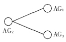 本文把參與IP視頻會(huì)議所有主機(jī)中的AM組織成分層排列圖結(jié)構(gòu),作為混合式組播的控制拓?fù)?并在主機(jī)申請(qǐng)加入會(huì)議時(shí)根據(jù)其帶寬處理能力和一定的算法規(guī)定它的入度最大值和出度最大值,它們分別也是剩余入度和剩余出度的初始值。每個(gè)分層排列圖都對(duì)應(yīng)一棵以排列圖為結(jié)點(diǎn)單位的樹。如圖3所示的以與會(huì)主機(jī)為單位的拓?fù)浣Y(jié)構(gòu)是一個(gè)由3個(gè)A4,2結(jié)構(gòu)(AG1、AG2和AG3)所組成的分層排列圖。圖3也可以看作如圖4所示的以排列圖為單位的樹結(jié)構(gòu),即以排列圖AG2為根、以AG1和AG3為葉子的一棵樹狀拓?fù)。設(shè)在分層排列圖中,父排列圖AGi中的結(jié)點(diǎn)i1和i2分別是子排列圖AGj的數(shù)據(jù)源結(jié)點(diǎn)和備用數(shù)據(jù)源結(jié)點(diǎn),AGj中的結(jié)點(diǎn)j1和j2分別是i1和i2對(duì)應(yīng)的根結(jié)點(diǎn),則在樹拓?fù)渲懈概帕袌DAGi與子排列圖AGj的連線實(shí)際上包括2條
