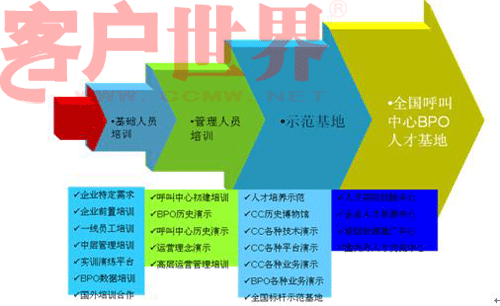 自然,首先得有人才的生產(chǎn)活著吸引能力,也就是意味著產(chǎn)業(yè)園區(qū)周邊有大量的相關(guān)院校,或者產(chǎn)業(yè)園區(qū)具有非常強(qiáng)的吸引外地人才的能力(例如北京),然后才談到人才的培養(yǎng),揚(yáng)州技師學(xué)院首設(shè)“呼叫專業(yè)”成為行業(yè)內(nèi)一個(gè)亮點(diǎn),事實(shí)上,北京早在2年前已經(jīng)在開(kāi)展試點(diǎn)的工作了。關(guān)于人才解決方案以及人員的培訓(xùn),下面的這張圖表述更加淋漓盡致: