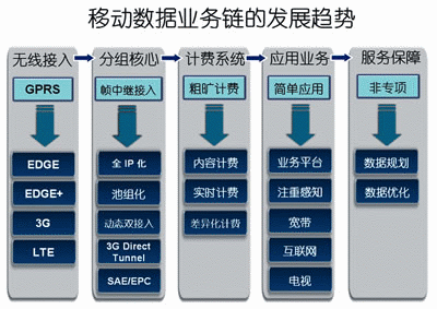 圖1 移動(dòng)數(shù)據(jù)業(yè)務(wù)鏈的發(fā)展趨勢