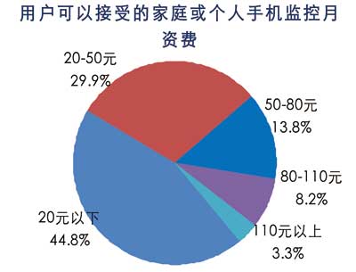 目前的資費(fèi)標(biāo)準(zhǔn)與用戶20元以下的資費(fèi)期望值存在很大差距,如果個(gè)人或家庭用戶的資費(fèi)可以降低到20-50元,手機(jī)視頻監(jiān)控服務(wù)將可以被大多數(shù)用戶所接受。