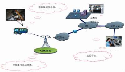 通過電信CDMA無線網(wǎng)絡(luò),采集移動(dòng)車輛視頻信息,傳送給監(jiān)控中心實(shí)現(xiàn)遠(yuǎn)程視頻瀏覽、遠(yuǎn)程控制功能,同時(shí)車載終端連接LCD觸摸屏并安裝GPS模塊后實(shí)現(xiàn)衛(wèi)星定位和語音自導(dǎo)航功能。系統(tǒng)發(fā)送監(jiān)控及定位信息給調(diào)度監(jiān)控中心,監(jiān)控中心實(shí)現(xiàn)大屏幕視頻圖像、電子地圖顯示,能及時(shí)、準(zhǔn)確地對(duì)車輛進(jìn)行調(diào)度、監(jiān)控和管理。監(jiān)控中心也可以向車輛發(fā)送調(diào)度、路況、新聞等各種信息,提供更好的服務(wù)。