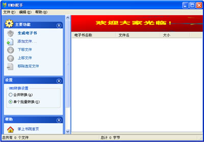 也有不少用戶利用UMD轉(zhuǎn)換工具將電子書轉(zhuǎn)換成UMD格式,但市場上的UMD轉(zhuǎn)換工具都不支持批量轉(zhuǎn)換功能,比如筆者最近想好好復(fù)習(xí)下英語。想將大量的英語資料制成手機(jī)電子書,在上下班坐車的時(shí)候?qū)W習(xí),使用普通的轉(zhuǎn)換器就會(huì)耗費(fèi)許多時(shí)間。經(jīng)過筆者不懈的上網(wǎng)挖掘,終于發(fā)現(xiàn)了一個(gè)好東東。掌上書院推出了首款UMD手機(jī)電子書批量制作工具UMD舵手1.0beta,據(jù)介紹,UMD舵手是目前唯一款UMD手機(jī)電子書批量制作工具,最多可一次性同時(shí)轉(zhuǎn)換300本以上的圖書,為喜愛自己動(dòng)手制作手機(jī)電子書的用戶提供了極大的方便,DIY個(gè)屬于自己的手機(jī)圖書館不再是夢(mèng)想了。