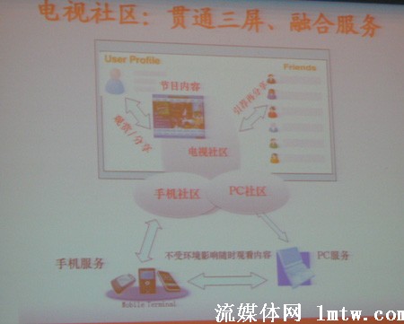 李川舉了一個三屏無縫連接的例子——新聞。在家里用電視看長視頻,看一個新聞可以半個小時,一個小時,可以進行深度的分析。如果在外面,則可以用手機看突發(fā)的新聞,這些突發(fā)新聞都是IP化的,都是同一個平臺,可以采取推送的方式,解決用戶對突發(fā)新聞及時、快速的要求。在辦公室,可以通過電腦屏對已經(jīng)發(fā)生的新聞進行跟蹤,也可以看網(wǎng)友的評論,新聞可以不漏看。