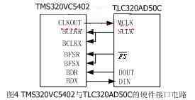 TMS320VC5402與TLC320AD50C的硬件接口電路如圖4所示。