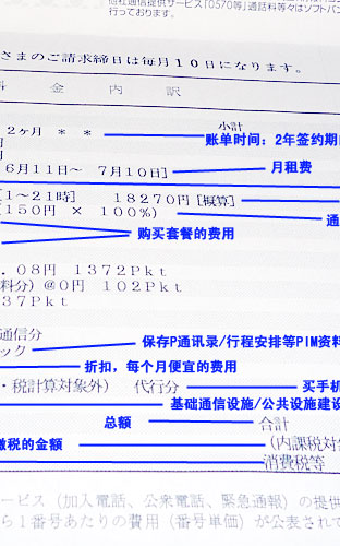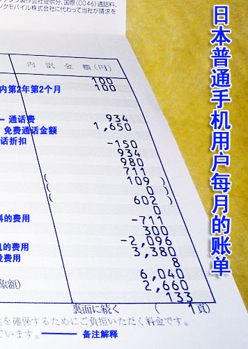 到底在購(gòu)買(mǎi)各種套餐之后,用戶每個(gè)月使用多少錢(qián)呢?下面是一份普通的日本手機(jī)用戶每個(gè)月收到的賬單,通過(guò)這份賬單我們清晰看出3G資費(fèi)的構(gòu)成。在這里,我們清晰看到?jīng)]有漫游費(fèi),如果沒(méi)有折扣,該用戶至少需要付近3萬(wàn)日元的費(fèi)用,實(shí)際上,最后用戶需要繳納的費(fèi)用是6064日元,其中還包含了購(gòu)買(mǎi)新款手機(jī)3380日元的費(fèi)用,實(shí)際上產(chǎn)生的話費(fèi)是2660日元。