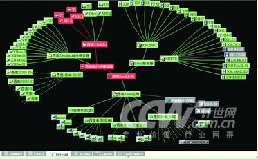 其次根據(jù)掌握的信息進(jìn)行建模。建模包括兩個(gè)方面,一是形成組件間的關(guān)聯(lián); 二是在關(guān)鍵組件上部署邏輯算法。邏輯算法也是根據(jù)業(yè)務(wù)邏輯和IT管理規(guī)則制定的。邏輯算法的應(yīng)用,極大地提高了根源問題定位的效率和準(zhǔn)確性。以西南區(qū)域郵件系統(tǒng)為例,影響西南郵件的因素有三類: 服務(wù)器、郵件應(yīng)用協(xié)議和關(guān)鍵鏈路。通常,當(dāng)連接某臺(tái)服務(wù)器的關(guān)鍵鏈路中斷時(shí),相應(yīng)的服務(wù)器及其上的協(xié)議也會(huì)顯示異常狀態(tài)。我們會(huì)看到大量告警節(jié)點(diǎn)和信息,無(wú)法判斷故障的根本原因。通過在關(guān)鍵點(diǎn)上設(shè)置邏輯算法,當(dāng)發(fā)生上述異常時(shí),只讓發(fā)生故障的關(guān)鍵鏈路節(jié)點(diǎn)變紅,而讓受之影響的服務(wù)器和協(xié)議節(jié)點(diǎn)處于靜默狀態(tài)(灰色顯示),從而使IT管理人員能夠直觀快速地判斷出故障的根源所在(如圖所示)。
