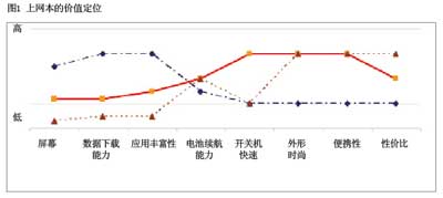 與計(jì)算機(jī)和手機(jī)對(duì)比,上網(wǎng)本和家庭信息機(jī)具有獨(dú)特的價(jià)值定位。通過(guò)藍(lán)海戰(zhàn)略分析圖,可以發(fā)現(xiàn)融合終端可能存在的市場(chǎng)空間。