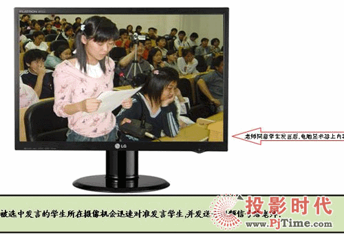 授課教室內(nèi)如果教師在講課,畫(huà)面自動(dòng)切換到教師,如果教師在使用電腦則自動(dòng)切換到電腦,如果教師讓某學(xué)生發(fā)言,則切換到學(xué)生畫(huà)面。