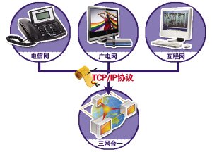 所謂三網(wǎng)融合,就是在同一個網(wǎng)上實現(xiàn)語音、數(shù)據(jù)和圖像的傳輸。對用戶而言,就是指只用一條線路可以實現(xiàn)打電話、看電視、上網(wǎng)等多種功能。