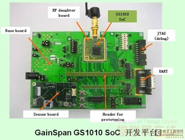 為了幫助客戶縮短開(kāi)發(fā)周期, GainSpan還提供了一整套包括SDK、評(píng)估平臺(tái)、開(kāi)發(fā)平臺(tái)在內(nèi)的軟硬件工具。其軟件棧包括了各種I/O驅(qū)動(dòng)和WLAN固件、RTOS、網(wǎng)絡(luò)棧、系統(tǒng)服務(wù)、WLAN和I/O服務(wù)模塊、各種應(yīng)用編程接口以及應(yīng)用軟件。Parmar聲稱(chēng),GS1010的SDK能夠幫助工程師節(jié)約10~12個(gè)月的開(kāi)發(fā)時(shí)間。而硬件開(kāi)發(fā)平臺(tái)則能夠支持溫度、濕度、光敏、壓力、加速度等各種傳感器,并預(yù)留了客戶自選的傳感器接口和調(diào)試以及程序燒錄接口。