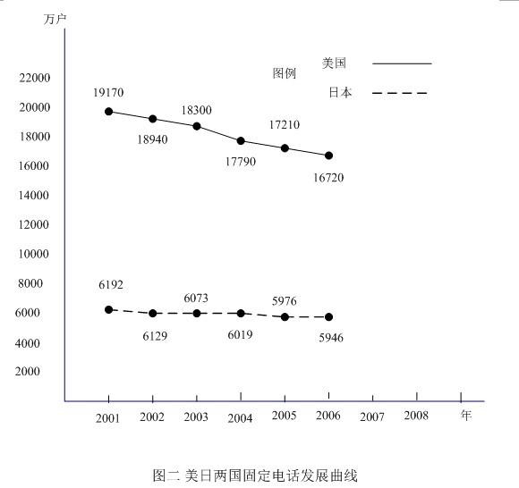 〔3〕大約有2%的美國家庭沒有電話。IBB咨詢公司資深分析師表示,「美國擁有大量愛講電話的人,可以隨處打電話正是美國人熱衷的事情! 大型傳統(tǒng)電話公司如AT&T、威瑞森(Verizon),受到美國人的這一偏好的影響,移動通信業(yè)務現(xiàn)都已經(jīng)超過了他們原本的核心業(yè)務(固定電話)。據(jù)桑福.伯恩斯坦公司的調(diào)查顯示,紐約地區(qū)固定電話的數(shù)量,從2000年以來已經(jīng)下降了55%,新澤西的情況也差不多,下降了50%。德州下降了20%,加州下降了21%。在年輕用戶中這個趨勢更為明顯:34.5%的25到29歲年齡段者,家中只有移動電話,30到44歲年齡段者,這個比例下降至15.5%,65歲以上者,只有2.2%。雖然移動電話對固定電話的取代作用,日美兩國基本相似,但在日本通信公司卻是IP電話和VoIP電話的主要提供者,因此日本固定電話歷年下降曲線就比較平坦,不像美國那樣厲害,請見圖二。