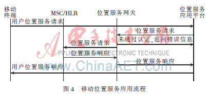 (3)在通過認(rèn)證的情況下,位置服務(wù)網(wǎng)關(guān)根據(jù)請求參數(shù)發(fā)送給運(yùn)營商網(wǎng)絡(luò)中的相關(guān)網(wǎng)絡(luò)實(shí)體,一般是移動業(yè)務(wù)交換中心MSC(Mobile Switching Center)和歸屬位置寄存器HLR(Home Location Register),由MSC進(jìn)行定位運(yùn)算,計(jì)算完畢后將參數(shù)返回給位置服務(wù)網(wǎng)關(guān),位置服務(wù)網(wǎng)關(guān)再將接收到的參數(shù)處理后返回該用戶的最新位置信息給位置服務(wù)應(yīng)用平臺。