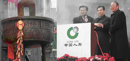 1月8日上午10:30,中國(guó)人壽大廈樓前披紅掛彩、獅舞龍騰,中國(guó)人壽保險(xiǎn)股份有限公司接受中國(guó)人保、中國(guó)再保、中國(guó)信保禮品饋贈(zèng)儀式在熱烈而隆重的氣氛中順利舉行。三家公司向我公司饋贈(zèng)了包括兩只寶鼎和三只水晶花瓶在內(nèi)的珍貴禮品,中國(guó)人保的唐運(yùn)祥總經(jīng)理、中國(guó)再保的戴鳳舉總經(jīng)理、中國(guó)信保的唐若昕總經(jīng)理先后發(fā)表了熱情洋溢的講話(huà),祝賀我公司雙喜臨門(mén):紐約、香港成功上市和喬遷新大樓,我公司總經(jīng)理王憲章代表公司接收了三家兄弟公司饋贈(zèng)的珍貴禮品并致感謝辭,他祝愿四家公司將中國(guó)民族保險(xiǎn)業(yè)更加發(fā)揚(yáng)光大。公司副總經(jīng)理苗復(fù)春主持了此次捐贈(zèng)儀式,出席此次饋贈(zèng)儀式的還有集團(tuán)公司和股份公司總經(jīng)理室的各位領(lǐng)導(dǎo)、各部門(mén)總經(jīng)理和員工。