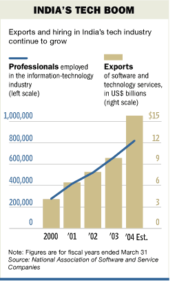 據(jù)印度軟件科技園的官員們介紹,在高科技中心班加羅爾,每周都會有兩三家西方公司的新業(yè)務(wù)在此開張,越來越多的公司將從軟件開發(fā)到企業(yè)后勤支持等工作外包給印度。