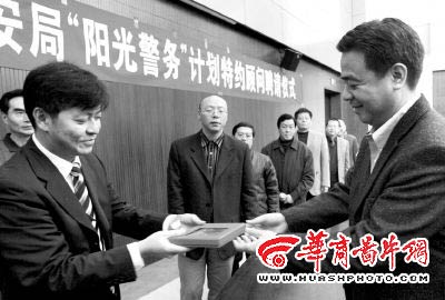昨日下午2時許,重慶市公安局“陽光警務(wù)”特約顧問聘請儀式上,重慶市公安局副局長、政治部主任彭長健頒發(fā)了特約顧問聘書。重慶市社會科學(xué)院研究員孫元明等18人成為我市警方首批聘請的“陽光警務(wù)”特約顧問。他們將作為警方的“智囊團”直接參與、監(jiān)督警務(wù)活動,聘任時間為兩年。