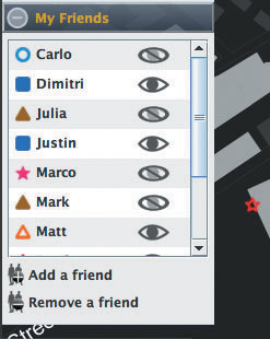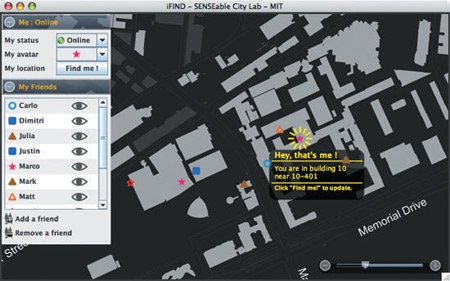 該軟件名為iFind,乍一看類似任何典型的即時(shí)通信軟件,也需要雙方相互邀請(qǐng),這樣才能進(jìn)入對(duì)方的好友名單。用戶可以選擇暫時(shí)隱藏起來,不讓某個(gè)好友或者整個(gè)群組看見自己,他們還可以完全把某人從好友名單中刪除。不過iFind的好友名單增加了地圖,可以實(shí)時(shí)顯示這些朋友在MIT校園的哪個(gè)角落。地圖顯示了通過Wi-Fi登錄到MIT網(wǎng)絡(luò)上的好友,讓用戶可以為每個(gè)朋友創(chuàng)建獨(dú)特的迷你頭像,能看到誰在學(xué)校河邊閑逛、誰在樓上圖書館看書。
