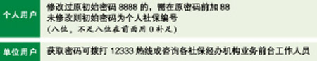 到底出了什么問題?記者在“登陸密碼說明”中了解到,原來由于系統(tǒng)安全升級(jí),密碼規(guī)則已發(fā)生變更。對(duì)個(gè)人用戶而言,對(duì)于修改過原初始密碼8888的,需在原密碼前加88;若未修改則初始密碼為個(gè)人社保編號(hào)(8位,不足8位在前面用0補(bǔ)足)。單位用戶獲取密碼可撥打12333熱線或咨詢各社保經(jīng)辦機(jī)構(gòu)業(yè)務(wù)前臺(tái)工作人員。