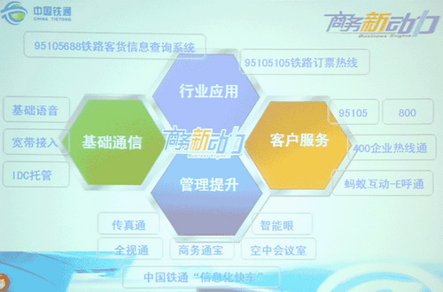 北京鐵通現(xiàn)場為企業(yè)用戶展示了其“商務(wù)新動力”客戶品牌的主要業(yè)務(wù),其中包括:信息化快車、空中會議室、智能眼、95105呼叫中心、螞蟻互動-E呼通等等。這些業(yè)務(wù)均是針對商企客戶的需求特點,為客戶量身定制模塊化、一站式信息化綜合解決方案,幫助企業(yè)把信息化技術(shù)廣泛應(yīng)用到生產(chǎn)經(jīng)營領(lǐng)域,從而使企業(yè)節(jié)約管理成本,降低成本壓力和投資風(fēng)險,提高經(jīng)濟(jì)效益和競爭實力。