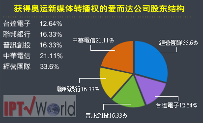 據IPTVWorld了解,2008年第29屆北京奧運比賽轉播權臺灣區(qū)網絡與手機平臺轉播權。國際奧委會 (IOC)除了證實這項消息,也表示,經過度。另外,鑒于愛爾達在美國職棒等運動賽事和韓劇等數字內容版權經營與后制服務擁有豐富的實務經驗,中華電在今年4月進一步以溢價參與愛爾達增資,取得21%的股權,成為愛爾達除了經營團隊外最大的股東。