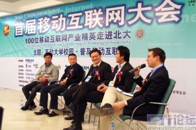 2007年12月19日,首屆移動(dòng)互聯(lián)網(wǎng)大會在中國的北京大學(xué)隆重舉辦。由手機(jī)圈傳媒主辦的本次活動(dòng)以“互動(dòng)大學(xué)校園,普及移動(dòng)互聯(lián)網(wǎng)”為主題,以“100位精英走進(jìn)北大”為活動(dòng)主線。包括中國移動(dòng)研究院、英特爾、GOOGLE、NOKIA、MOTO、聯(lián)想研究院、ARM、方正阿帕比、空中網(wǎng)、3G門戶、手機(jī)騰訊網(wǎng)、手機(jī)搜狐網(wǎng)、手機(jī)新浪網(wǎng)、大頭網(wǎng)、萬蝶網(wǎng)、美科互動(dòng)、dotMobi公司等100多家移動(dòng)互聯(lián)網(wǎng)領(lǐng)先企業(yè)均參與到本次論壇。