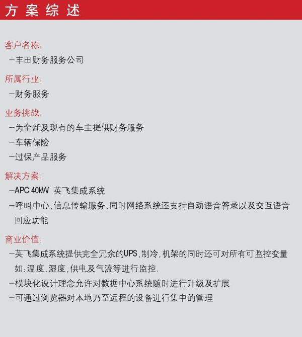 豐田財務(wù)服務(wù)公司通過APC系統(tǒng)架構(gòu)保護(hù)其VoIP系統(tǒng)