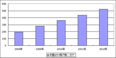 圖3 2008年-2012年中國IPTV用戶數(shù)