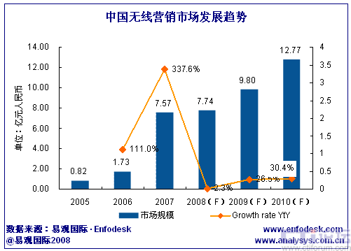易觀:2008年中國無線營銷市場(chǎng)規(guī)模將達(dá)7.74億元