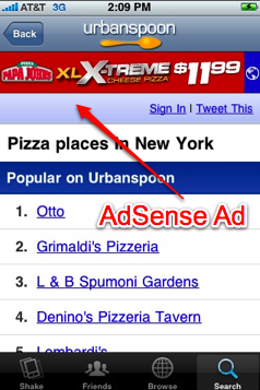 AdSense旋風(fēng)已經(jīng)刮到了iPhone和Android應(yīng)用程序里,目前iPhone的UrbanSpoon和Android的Shazam都已經(jīng)開始集成Mobile AdSense,根據(jù)當(dāng)前應(yīng)用所顯示的內(nèi)容、你所在的地理位置、應(yīng)用的類別和關(guān)鍵字來匹配最合適的廣告。目前Mobile AdSense還在beta測(cè)試,只支持iPhone和Android應(yīng)用程序,參加beta測(cè)試的應(yīng)用程序要求每天至少要有10萬次的廣告展示機(jī)會(huì),并在4周內(nèi)將內(nèi)置Mobile AdSense的應(yīng)用程序更新上線。