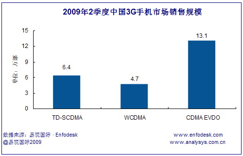 2009年第2季度中國3G手機市場整體銷量達(dá)到24.2萬