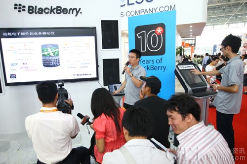 此次RIM公司的展臺比08年增加了一倍。頗具時尚和現(xiàn)代感的RIM公司展位(W1100)吸引本屆通信展人流注目,展廳外的“10”標(biāo)志著BlackBerry光輝的10年歷程。BlackBerry自十年前創(chuàng)立以來,不斷發(fā)展,已經(jīng)覆蓋全球超過165個國家,擁有超過475個運營渠道,BlackBerry企業(yè)解決方案更成為移動商務(wù)領(lǐng)域的黃金標(biāo)準(zhǔn),廣泛應(yīng)用于政府機關(guān)和眾多企業(yè),其中包括世界五百強企業(yè)。展廳內(nèi),RIM公司展示了BlackBerry